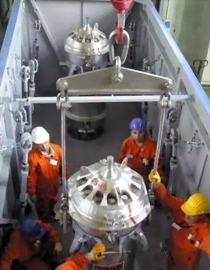 Heavy water is obtained from Danube River waters (1 kg of heavy water for approximately 300 tons of normal light water), which - as all surface continental waters, naturally contain a heavy water quantity of 0.0145%. This heavy water existing in natural water, is separated and enriched within ROMAG-PROD Plant up to a nuclear grade concentration of minimum 99.78%. The process of heavy water producing is based on isotopic exchange between water and hydrogen sulphide in bi-therm system, inside of Girdler-Sulphide plants, where a primary enrichment in Deuterium is reached up to approx 4-12%, based on the following reactions:
